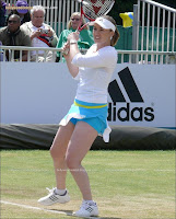 Hingis is one of the best conditioned tennis stars around, which is one of the most important factors of her success. She is a sleek, taut and vibrant little thing, in stark contrast to the massive specimens dominating the tour of late